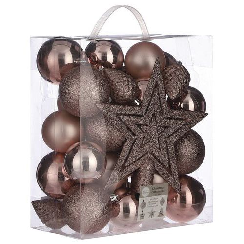 - Set di 40 pezzi: palle, diverse decorazioni e un puntale a forma di stella.