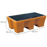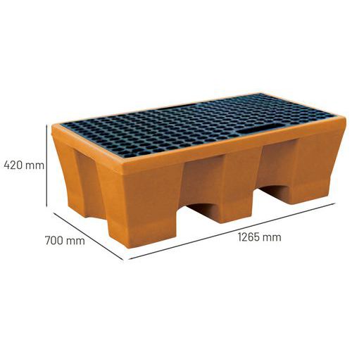 | Descrizione | Pallet di ritenzione, Capacità di ritenzione: 240 L, Colore: Arancione, Capacità (n.di fusti): 2 |