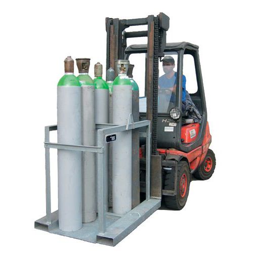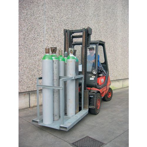 - Per trasportare e movimentare in sicurezza le bombole con carrello elevatore o gru