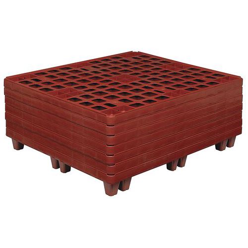 Pallet impilabile su piedi per un guadagno di volume del 62% sul ritorno a vuoto.