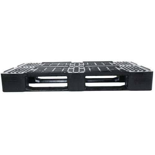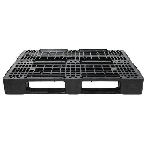 Pallet in plastica resistente stampato in un unico pezzo. Pallet non poroso, non trattiene liquidi. Pulizia accurata e sicura con struttura aperta. Pallet riponibile su scaffali per pallet classici.