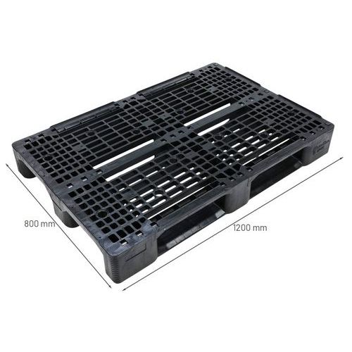 Pallet in plastica resistente stampato in un unico pezzo. Pallet non poroso, non trattiene liquidi. Pulizia accurata e sicura con struttura aperta. Pallet riponibile su scaffali per pallet classici.