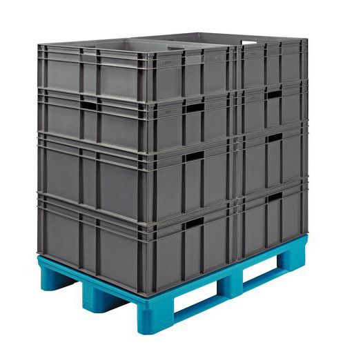 Pallet con pianale rinforzato a doppia parete per una maggiore rigidità.