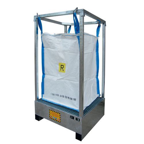 - Pallet porta big bag zincato disponibile in 2 diverse versioni, con e senza vasca di contenimento.