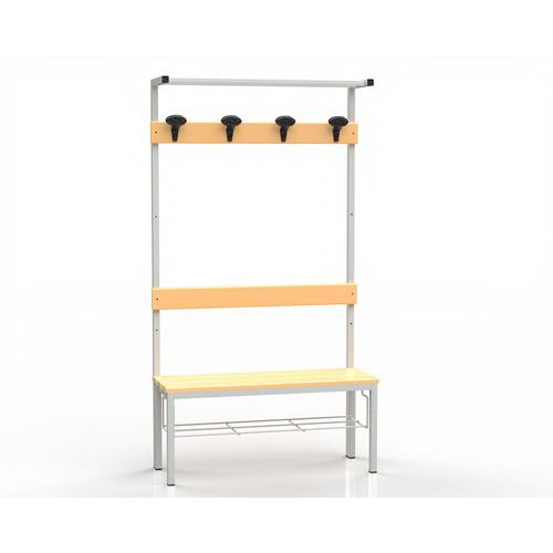 | Descrizione | Panca con alzata in acciaio e doghe in legno con portascarpe, Seduta, materiale: Legno lamellare |
