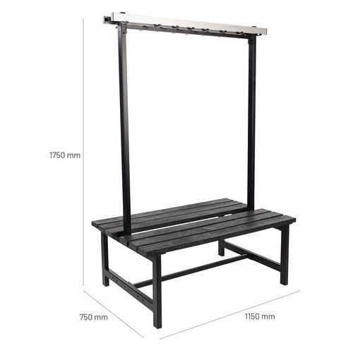 | Descrizione | Panca con appendiabiti in plastica, Seduta, materiale: PVC, N. di attaccapanni: 16, Larghezza: 1150 mm |