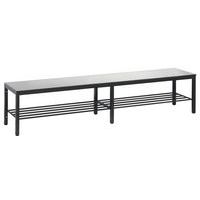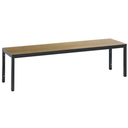 Panca appendiabiti semplice, struttura solida, con o senza griglia porta-scarpe a seconda del modello. Finitura elegante con rivestimento in legno massiccio: seduta, HPL, alta resistenza all'umidità. Panca con piedini con gommini per la protezione dei pavimenti regolabili per la compensazione perfetta dell'altezza (10 mm). Struttura tubolare in acciaio con sezione 30 x 30 mm. Rivestimento della seduta HPL con spessore 13 mm. Modello con griglia porta-scarpe: telaio zincato per elettrolisi.