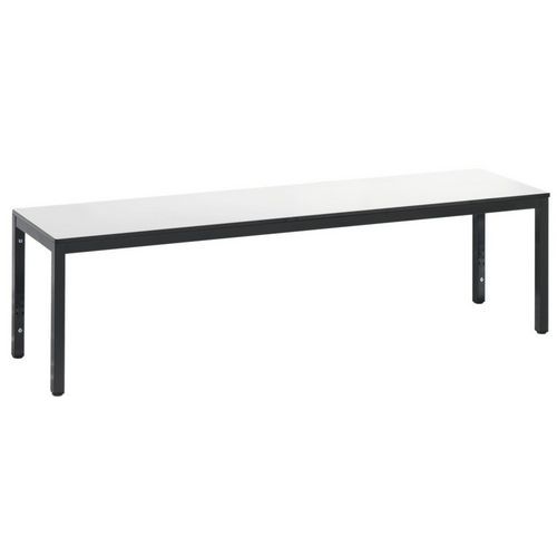 Panca appendiabiti semplice, struttura solida, con o senza griglia porta-scarpe a seconda del modello. Finitura elegante con rivestimento in legno massiccio: seduta, HPL, alta resistenza all'umidità. Panca con piedini con gommini per la protezione dei pavimenti regolabili per la compensazione perfetta dell'altezza (10 mm). Struttura tubolare in acciaio con sezione 30 x 30 mm. Rivestimento della seduta HPL con spessore 13 mm. Modello con griglia porta-scarpe: telaio zincato per elettrolisi. Realizzato in Germania