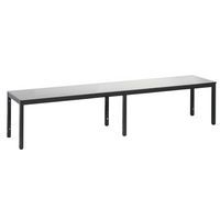 Panca appendiabiti semplice, struttura solida, con o senza griglia porta-scarpe a seconda del modello. Finitura elegante con rivestimento in legno massiccio: seduta, HPL, alta resistenza all'umidità. Panca con piedini con gommini per la protezione dei pavimenti regolabili per la compensazione perfetta dell'altezza (10 mm). Struttura tubolare in acciaio con sezione 30 x 30 mm. Rivestimento della seduta HPL con spessore 13 mm. Modello con griglia porta-scarpe: telaio zincato per elettrolisi. Realizzato in Germania