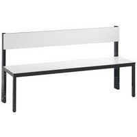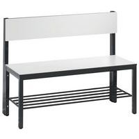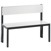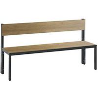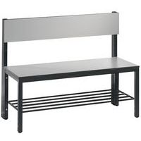 Panca appendiabiti con schienale, struttura solida, con o senza griglia porta-scarpe a seconda del modello. Finitura elegante con rivestimento in legno massiccio: seduta e schienale HPL, alta resistenza all'umidità. Piedini con gommini per la protezione dei pavimenti, regolabili per la compensazione perfetta dell'altezza (10 mm). Struttura tubolare in acciaio con sezione 30 x 30 mm. Rivestimento della seduta HPL con spessore 13 mm. Modello con griglia porta-scarpe: telaio zincato per elettrolisi. Realizzato in Germania