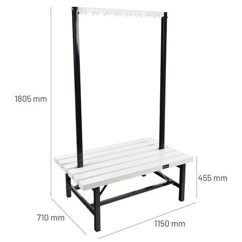 | Descrizione | Panca in PVC a due appendiabiti, Seduta, materiale: PVC, N. di attaccapanni: 16 |