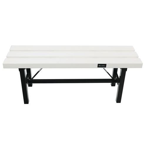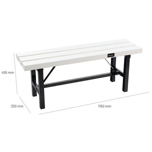 Panca in PVC bianca - Da montare - Manutan Expert - Panca in PVC bianca per l'uso in interni. Struttura resistente all'umidità e facile da pulire. Struttura leggera per un montaggio e una movimentazione semplici. Design sobrio e funzionale, ideale per gli ambienti collettivi. Ideale per spogliatoi, aree relax e aree di passaggio.