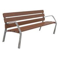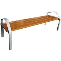 Panchina in stile essenziale, bimateriale: acciaio/legno, acciaio/HPL o acciaio/alluminio.