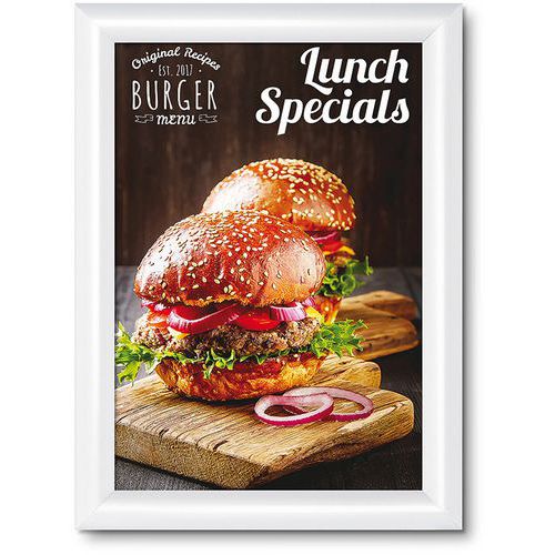 Facile utilizzo: il supporto per affissione si posiziona e si rimuove agevolmente aprendo e richiudendo i 4 bordi profilati della cornice in alluminio.