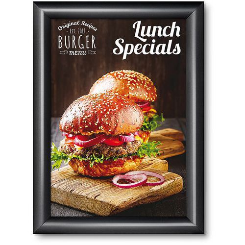 - Pannelli clic-clac da 25 mm con angoli obliqui per piccoli poster in formato A4 e A3.