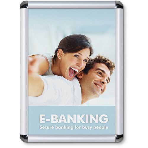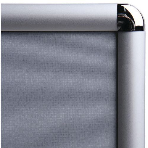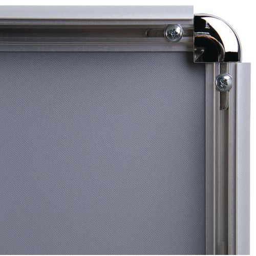 Supporto per affissione resistente in alluminio. Facilità di utilizzo: il supporto per affissione si posiziona e si rimuove agevolmente aprendo e richiudendo i 4 bordi profilati della cornice in alluminio. Il contenuto di affissione resta protetto e accessibile. Angoli arrotondati per una maggiore sicurezza.