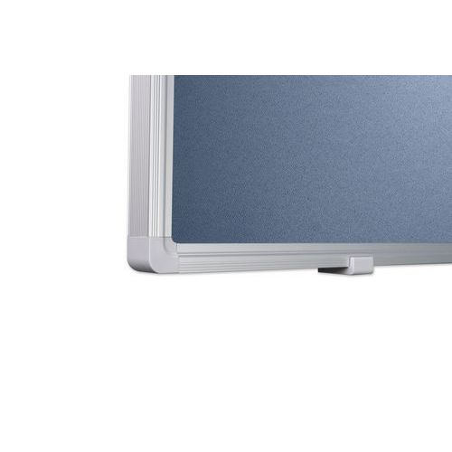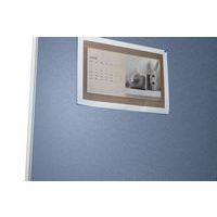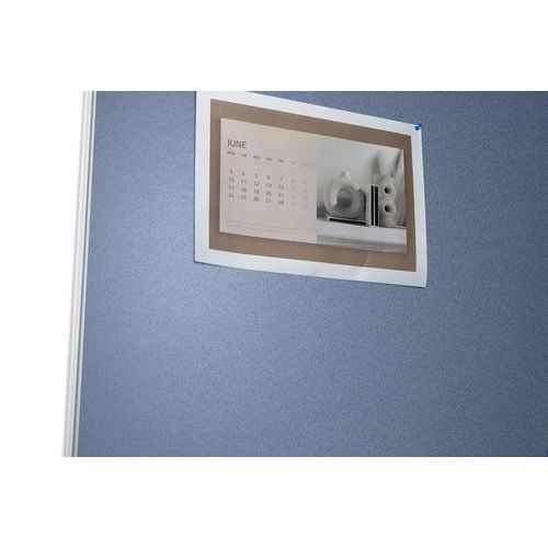 Lavagna di affissione in tessuto per puntine. Superficie di alta qualità in materiale 100% riciclato. Fondo in ampia gamma di colori. Materiale in alluminio anodizzato di qualità. Telaio con profili e angoli in plastica. Manutenzione agevole. Resistente al fuoco.