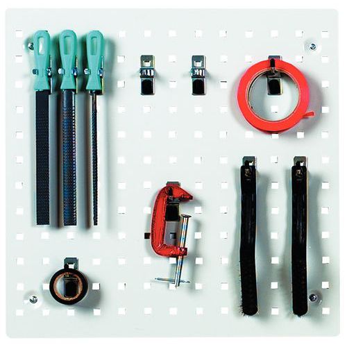 | Descrizione | Pannello e ganci Perfo Light, Colore: Grigio, Larghezza Pannello: 500 mm, H Pannello: 500 mm |