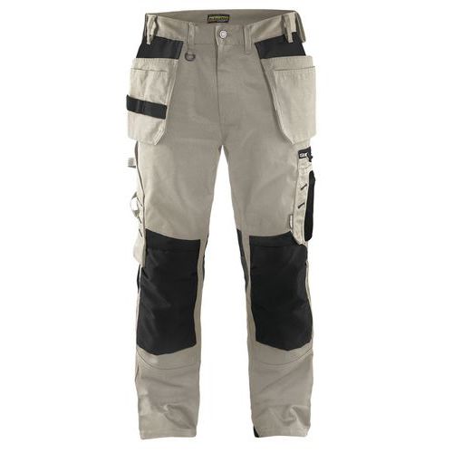 Qualità: 1860 65% poliestere, 35% cotone, twill, 300 g/m² CERTIFICAZIONE: EN 14404:2004+A1:2010 con ginocchiere 4027, 4057, 4058 e 4032. Lavaggio consigliato: 60 °C. Asciugatrice-basso. Evitare il candeggio. Evitare il lavaggio a secco. Stiratura - medio. DETTAGLI: Bottoni in metallo. Due passanti laterali con bottone per fissare la porta, passante con anello a D frontale. Ampio passaggio posteriore. Cuocere tre volte tutto all'interno della gamba. Patta con cerniera in plastica. Portabadge Tasca, removibile. PROPRIETÀ IN PRINCIPALI: EN 14004. Addetto ai calcestruzzi. Artigiano. Elettricista. Idraulico. Magazziniere. Meccanico. RINFORZO: Tasche per ginocchiere rinforzate in Cordura® stretch. Borsa retrorinforzata in CORDURA®. TASCHE: Tasca rinforzata per metro a stecca, con porta cutter e tasca porta penna. Uomo