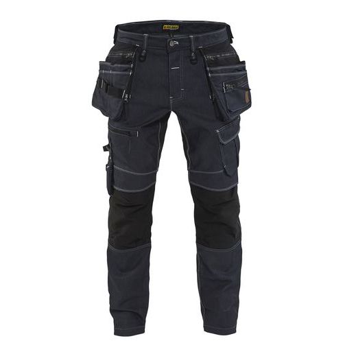Qualità:1141 55% cotone, 15% poliestere, 30% poliestere, denim rivettato, CORDURA® Denim, elasticizzato, 340g/m² CERTIFICATO: EN 14404:2004+A1:2010 con ginocchiere 4027, 4057, 4058 e 4032. CONSIGLI PER IL LAVAGGIO: 40°C. Evitare l'asciugatrice. Evitare il candeggio. Evitare il lavaggio a secco. Stiratura-basso. DETTAGLI: Bottoni in metallo. Due passanti laterali con bottone per fissare la porta, passante con anello a D frontale. Ampio passaggio posteriore. Cavallo con cottura sciacquata. Cuocere tre volte tutto all'interno della gamba. Patta con bottoni. Porta coltello svedese con bottone. Anello a D in vita. FUNZIONE: Inserti stretch sul cavallo, sui polpacci e taca per ginocchiere. Allunga 2-vita. LAVAGGIO: Capo prelavato. PROPRIETÀ IN PRINCIPALI: EN 14004. Artigiano. RINFORZO: Rinforzi in Cordura® 1000 su borsa galleggiante, borsa posteriore e borsa metro. Borsa per ginocchiere rinforzata in Cordura® stretch. COMPITO: Tasca rinforzata per metro a stecca, con porta cutter et ta