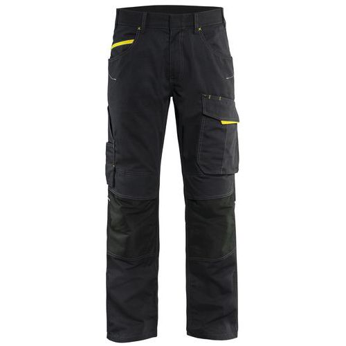 Pantaloni da lavoro stretch nero/giallo fosforescente Pantaloni da lavoro stretch nero/giallo fosforescente