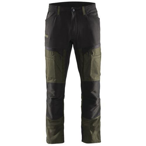 Pantaloni da lavoro stretch verde oliva/nero con tasca A4 per tablet