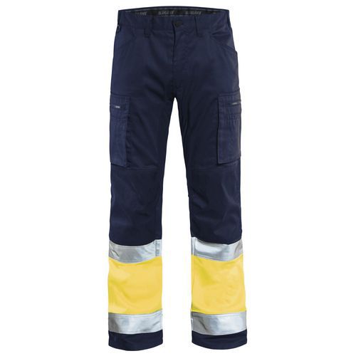 Pantaloni per artigiano stretch ad alta visibilità blu marino/giallo fluorescente Pantaloni per artigiano stretch ad alta visibilità blu marino/giallo fluorescente