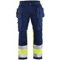 Pantaloni per artigiano stretch ad alta visibilità blu marino/giallo fluorescente con tasche e cintura
