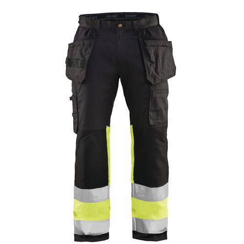 Pantaloni per artigiano stretch ad alta visibilità nero/giallo fluorescente Pantaloni per artigiano stretch ad alta visibilità nero/giallo fluorescente