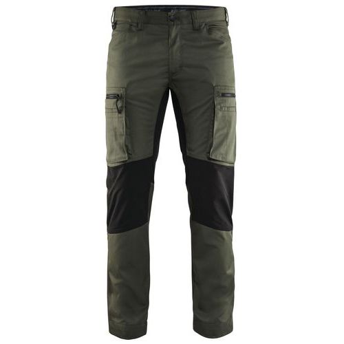 Pantaloni Service con inserti stretch Verde militare/Nero