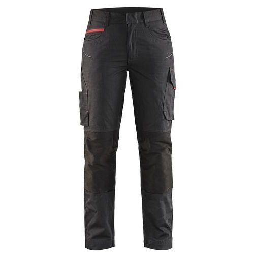 Qualità: 1330 60% cotone, 40% poliestere, ripstop 250 g/m² CERTIFICAZIONE: EN 14404:2004+A1:2010 con ginocchiere 4027 e 4057. Lavaggio consigliato: 60 °C. Evitare l'asciugatrice. Evitare il candeggio. Evitare il lavaggio a secco. Stiratura-basso. DETTAGLI: Bottoni è scomparso. Patta con cerniera in plastica. Asola laterale per martello. Anello a D. Elastico in vita. FINITURA: Orlo allungabile. FUNZIONALITÀ: Antigraffio. Inserti stretch sul cavallo, sui polpacci e taca per ginocchiere. Presagomato di Ginocchia. Vestibilità da donna. PROPRIETÀ IN PRINCIPALI: EN 14004. Addetto ai servizi. Addetto a tutte le pulizie. Autismo. Magazziniere. Meccanico. REFLEX: Dettagli riflettenti. RINFORZO: Tasche per ginocchiere rinforzate in Cordura® stretch. TASCHE: Tasca per metro a stecca con porta cutter e tasca porta penna. Compito ad inserto. Tasca portaginocchiere esterna. Posche posteriori. Tasca surla coscia a soffietto, taschino porta penne e taschino interno porta cellulare in rete. TESSUTO: In