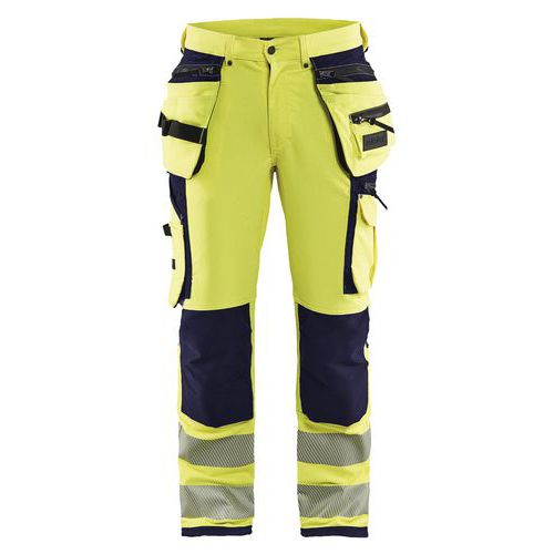Pantaloni stretch 4D ad alta visibilità giallo fluorescente/blu marino
