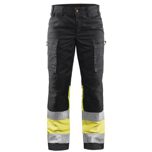 Pantaloni stretch ad alta visibilità da donna blu marino/giallo fluorescente Pantaloni stretch ad alta visibilità da donna blu marino/giallo fluorescente