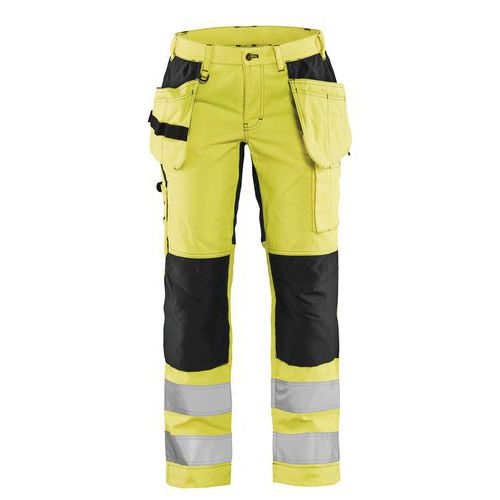 Pantaloni stretch ad alta visibilità da donna giallo fluorescente/nero