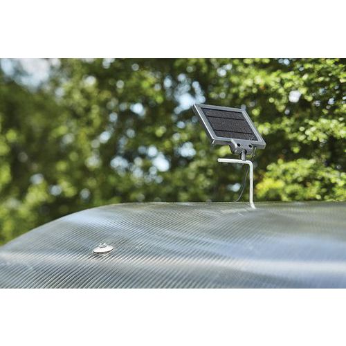 Fornito con un pannello solare e un faretto (rilevatore di presenza solamente notturno).
