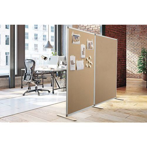 Parete di separazione in sughero naturale con uno spessore a nido d'ape e una base in legno di compensato.