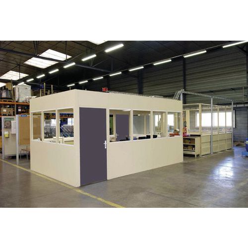 Parete divisoria a doppia parete in lamiera d'acciaio - Pannello vetrato (8 mm) - Altezza 2,5 m