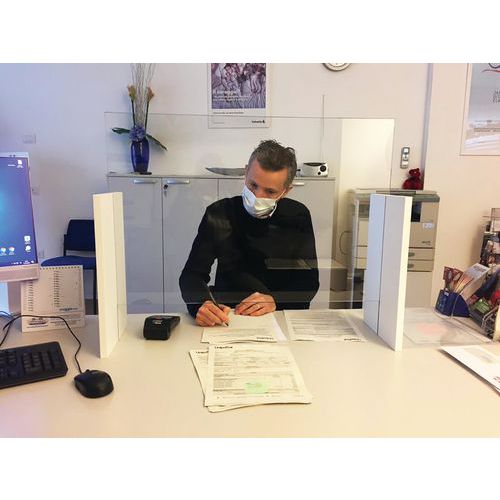 | Descrizione | Parete divisoria di protezione in vetro temprato modulabile, Altezza: 190 cm, Pannello colore: Trasparente |