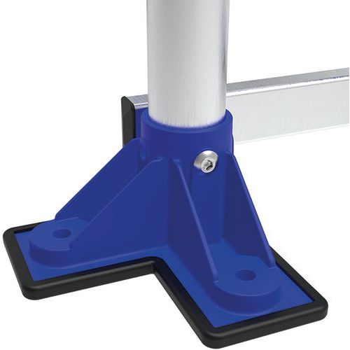Passerella in alluminio fissa a doppio ingresso, altezza di accesso ridotta. Sicura: 1 parapetto integrato per una maggiore sicurezza anticaduta. Stabile con piattaforma ampia e gradini profondi antiscivolo. Passerella fissabile al suolo secondo necessità tramite piedi ampi a doppio fissaggio. Struttura molto resistente, adatta a un uso intensivo, per superfici piane. Confortevole, modulare, polivalente, per qualsiasi esigenza. Piede a doppio fissaggio, viti Ø 8 mm (non fornite). Parapetto con zoccolo integrato (h 100 mm).