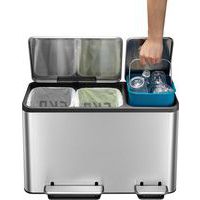 Pattumiera a pedale EcoCasa 15+15+15 litri, EKO, Capacità: 45 L, Apertura: A pedale, Materiale: Inox