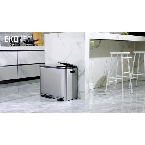 I due pedali consentono di accedere separatamente ai secchi interni in plastica (2x 15 + 1x 15 litri) per la raccolta differenziata.