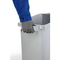 Pattumiera in plastica per la raccolta e la separazione dei rifiuti e dei rifiuti riutilizzabili. Capacità 60 litri. Di forma rettangolare. Maniglia robusta per una maggiore facilità di trasporto. Prese sul fondo che ne facilitano lo svuotamento. Fessure per fissare i sacchi dell’immondizia.