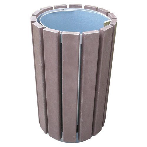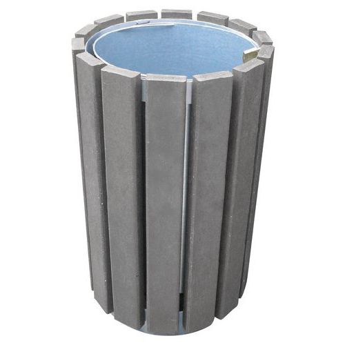 - Pattumiera rotonda senza coperchio con doghe in plastica riciclata, spessore 30 mm.