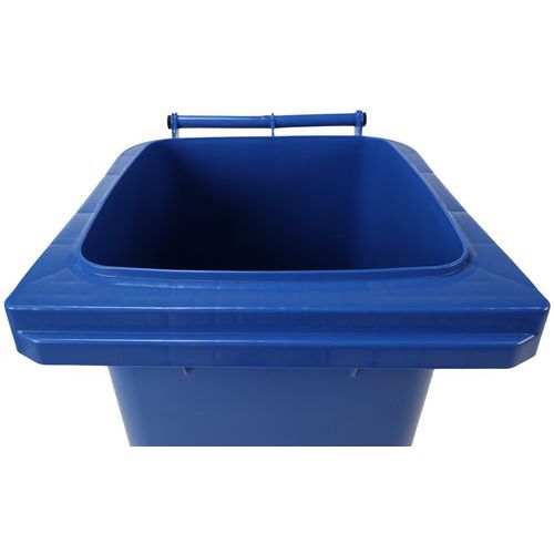 Pattumiera pratica e maneggevole grazie alle maniglie e alle ruote resistenti. Disponibilità in diversi colori per agevolare la raccolta differenziata e l'identificazione del contenuto. Ruote piene da 200 mm di diametro. In polietilene ad alta densità di ottima qualità. Resistente ai raggi UV e agli urti. Contenitore resistente agli agenti chimici e protetto da insetti dannosi. Non assorbe liquidi, lavabile e sterilizzabile.