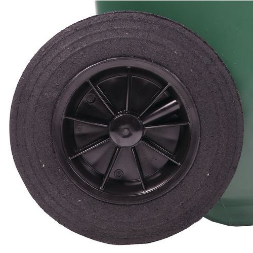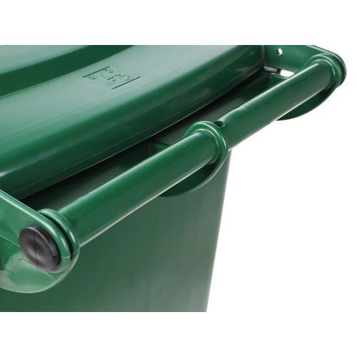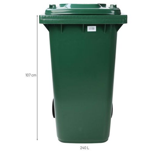 Pattumiera pratica e maneggevole grazie alle maniglie e alle ruote resistenti. Disponibilità in diversi colori per agevolare la raccolta differenziata e l'identificazione del contenuto. Ruote piene da 200 mm di diametro. In polietilene ad alta densità di ottima qualità. Resistente ai raggi UV e agli urti. Contenitore resistente agli agenti chimici e protetto da insetti dannosi. Non assorbe liquidi, lavabile e sterilizzabile.