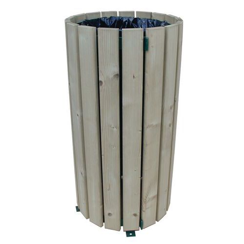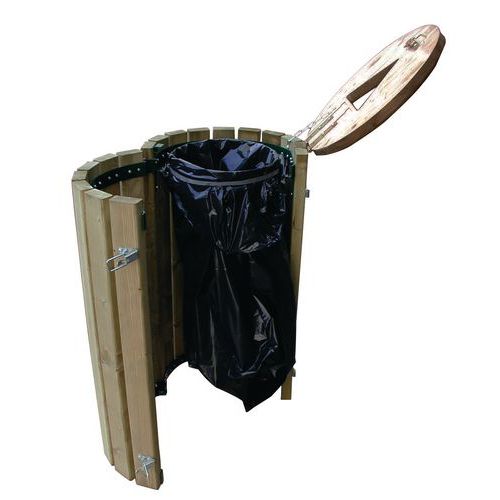 - Pattumiera in legno per esterni Geneve con 17 doghe e apertura con cerniera per un accesso rapido al sacco.
