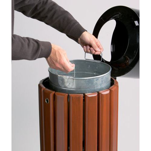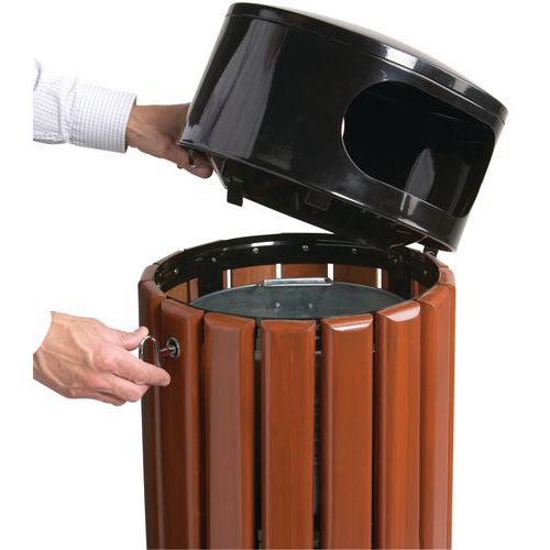 | Descrizione | Pattumiera in metallo e legno, Capacità: 40 L, N. di borse: 1, Apertura: Intaglio, Materiale: Legno |