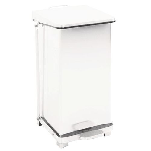 Questa robusta pattumiera bianca si apre con un pedale ed è resistente al fuoco e agli agenti atmosferici.