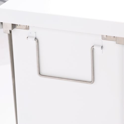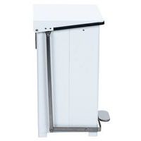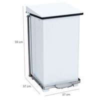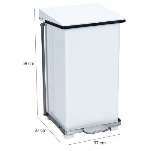 Questa robusta pattumiera bianca si apre con un pedale ed è resistente al fuoco e agli agenti atmosferici.