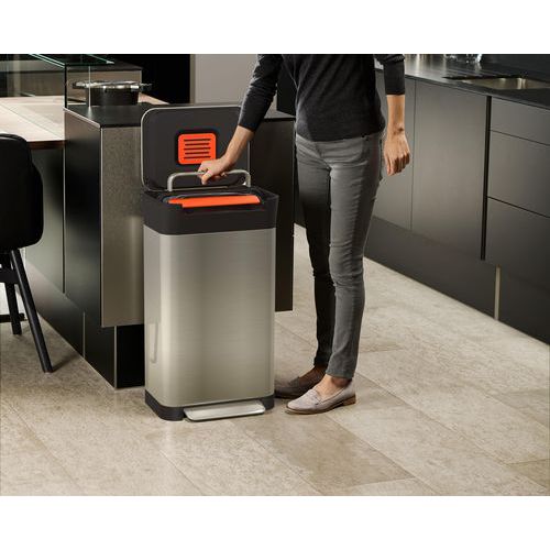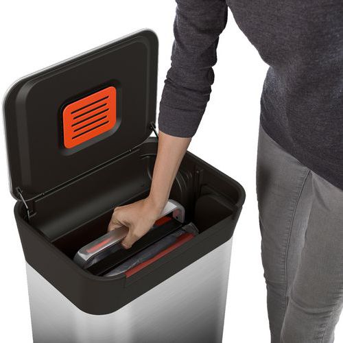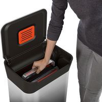In questo modo la pattumiera può contenere fino a 3 volte il volume di rifiuti e il sacco può essere sostituito meno spesso.